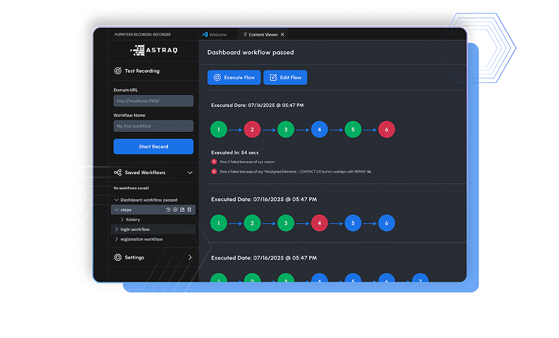 “AstraQ has been invaluable for us, testing over 50 workflows daily and auto-creating test cases from real user interactions.”